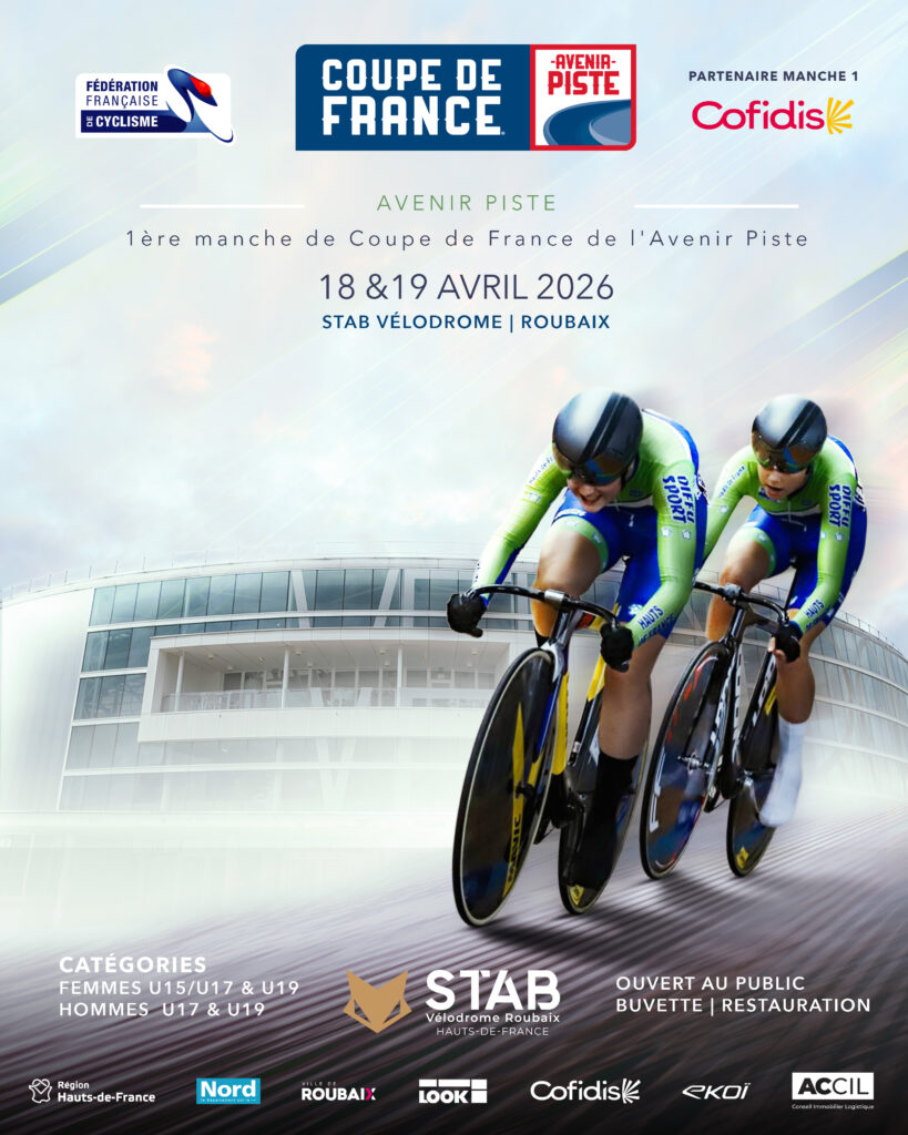 L’édition 2026 de la Coupe de France Avenir Piste se tiendra les 18 et 19 avril au Vélodrome Jean Stablinski de Roubaix, dans les Hauts-de-France. Inauguré en 2012, ce vélodrome couvert de 250 mètres avec une piste en bois est un site de référence pour les compétitions nationales.